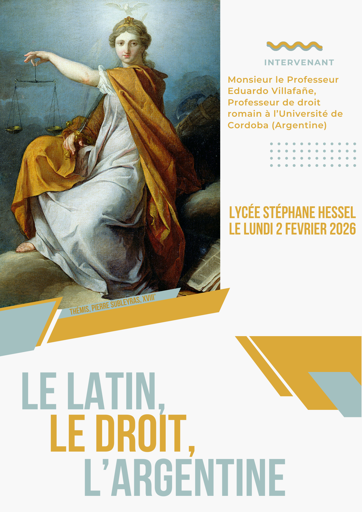 Les élèves de première latin du lycée Hessel vont rencontrer M. Le Professeur Eduardo Villafañe spécialiste du droit romain à l’Université de Cordoba en Argentine.
