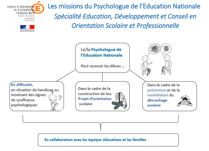 A noter : Le/la Psychologue Education Nationale exerce son métier dans le respect des principes déontologiques et éthiques de la profession réglementée de psychologue